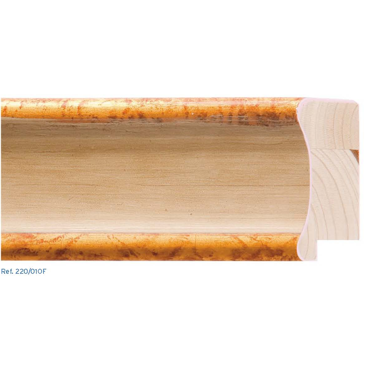 Moldura de 67x29 mm. centro caña crema exterior e interior oro de hoja.